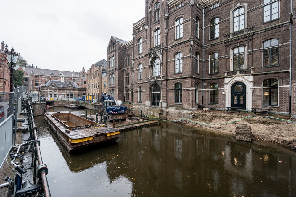 De kade van de Grimburgwal is direct na het instorten versterkt. In 2026 gaan we de kademuur vervangen. Die vervanging is onderdeel van een complex project, waarbij we een aantal kademuren en bruggen in het gebied herstellen. Sinds augustus zijn we al bezig met de voorbereidingen hiervoor, onder meer met de vervanging van kabels en leidingen in het gebied.