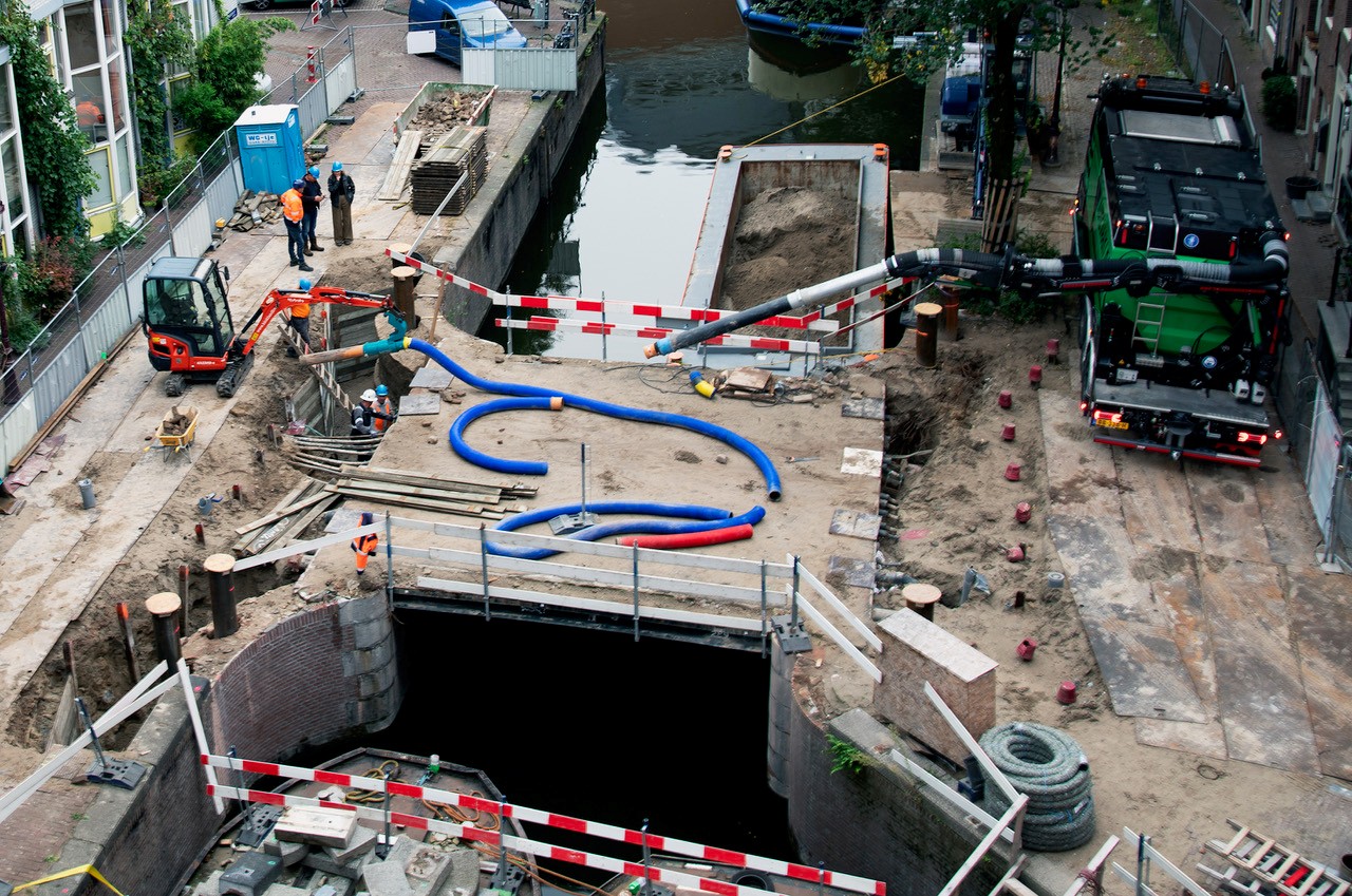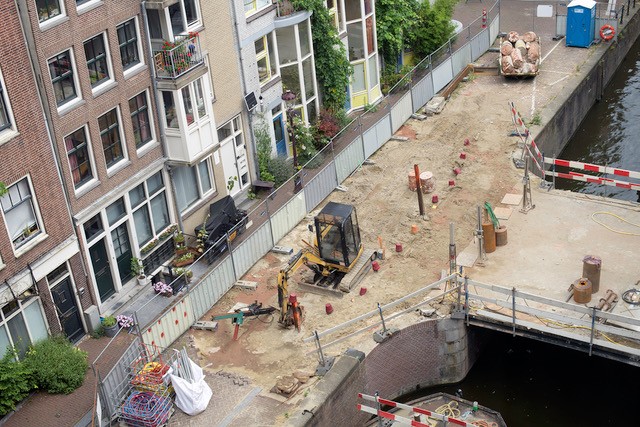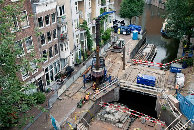 Hoe renoveer je een brug op een plek ‘zo klein als een postzegel’, waar je amper kunt manoeuvreren? Enter de bruggenspecialisten van Gemeente Amsterdam. Zij bedachten een oplossing met een Berlinerwand, natte knopen en bodeminjectie, en zorgden dat alles voorspoedig verliep.