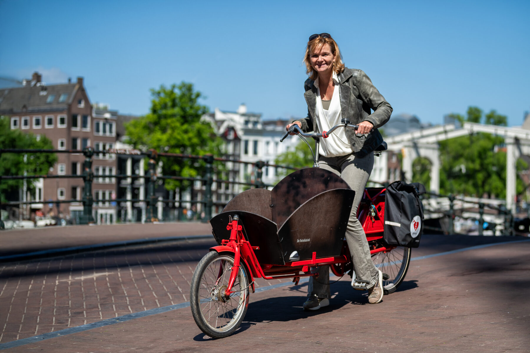 Vorig jaar was zwaar voor Résalieke en haar gezin. Onverwacht verloor ze haar zoon Eelke. Hij had epilepsie, reed tijdens een aanval op weg van werk naar huis in een sloot en verdronk. “Hij had een enorme vriendengroep en hij werkte veel in de Amsterdamse horeca. Overal in de stad zijn herinneringen aan hem en aan ons als compleet gezin.” Fietsen door Amsterdam maakt haar nu soms verdrietig, vertelt Résalieke. “Al die herinneringen zijn heftig, maar het houdt ons ook verbonden met hem. Zo werkt het ook met de Jan Vinckbrug: aanzetten omhoog, dan dat gewichtloze sprongetje. Ik voel het leven en de energie, en tegelijkertijd het grote gemis. Dat is wie ik nu ben.”