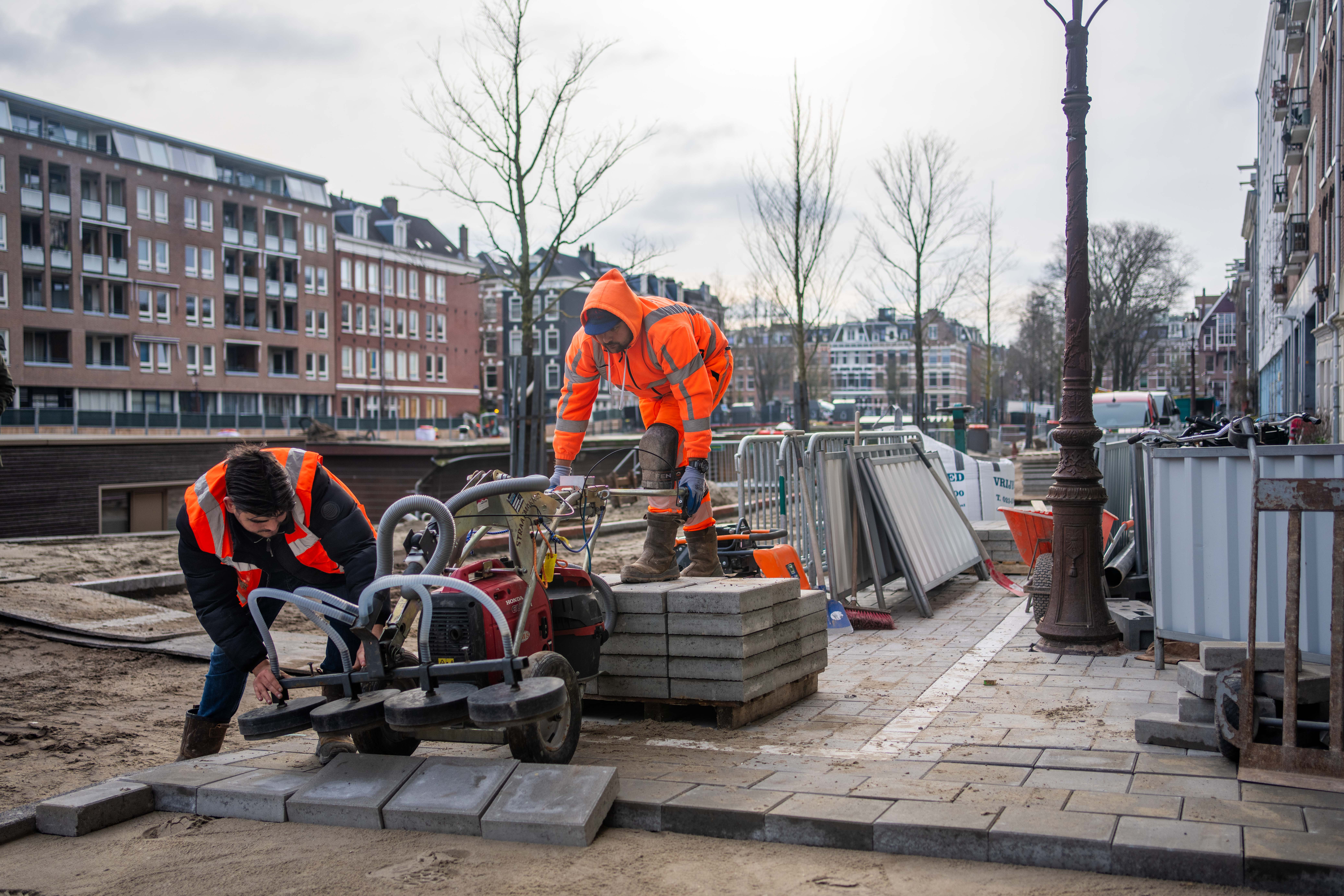 Vier weken hebben stratenmakers Dennis en Emre voor deze klus aan de Da Costakade. Terwijl assistent-uitvoerder Cemil uitlegt hoe een straat wordt opgebouwd, werken zij onverstoorbaar verder.